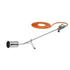 Klaarzetten van de Brander: Sluit de 5 meter lange gasslang aan op de propaangasfles en stel de gewenste vlamsterkte in. Zorg ervoor dat je de gasbrander goed vasthoudt met de handgreep en de waakvlamhendel gebruikt voor een gecontroleerde vlam.